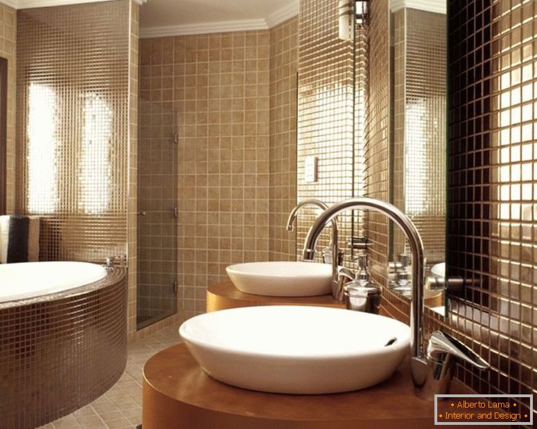 Baia clasică este jucată cu ajutorul unui joc de nuanțe bej. Combinarea cu plăci albe realizează efectul iluminării suplimentare, extinderea spațiului limitat. Contrast cu o acoperire întunecată a pardoselii, tavanul adaugă o tavă prea înaltă. Lipsa unei partiții în băile combinate este compensată prin zonare, combinând diferite nuanțe de faianță pe pereți. Rece nuanțe de a crea un sentiment de puritate, cald - relaxare. În plus, unele nuanțe luminoase sunt funcționale - ele sunt urme aproape invizibile de apă. Măsuri de precauție ar trebui să se apropie de alegerea solzi albastru, verzui, aceste culori în cazul unei utilizări abuzive a evidenția deficiențele pielii, reflectarea în oglindă nu va arata favorabil. Toaletă, situată separat de baie, culorile luminoase ale culorilor, mai degrabă pentru a extinde spațiul. Schema de culori nu este atât de importantă, deși adesea coincide în stil cu decorul băii.