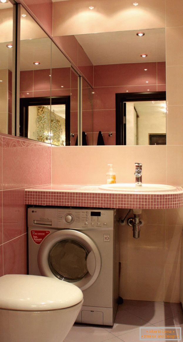 pentru interior al unui mic studio în acest proiect, specialiștii au folosit o nuanță bogată și expresivă de fuchsie pentru decorarea pereților în zona de luat masa. Acest decor original a fost completat cu textile și scaune cu un scaun de plexiglas roz transparent.