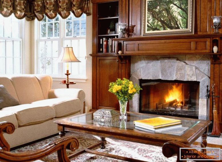 Principala caracteristică distinctivă a stilului englezesc este șemineul. Eleganța va oferi o bibliotecă și mobilier din lemn. Paleta de culori a tonurilor de licitație este albă, măslină, gri. Stilul iubește monotonia în totul. Prezenta diferitelor sfeșnice va da un accent deosebit interiorului.