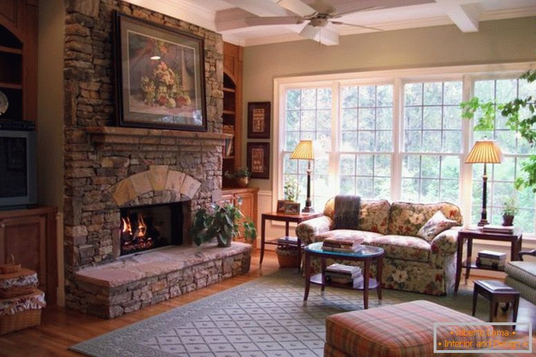 Țară - exprimă strălucitor natura satului. Pierderile pe mobilier și nuanțele naturale sub arborele subliniază decorul.