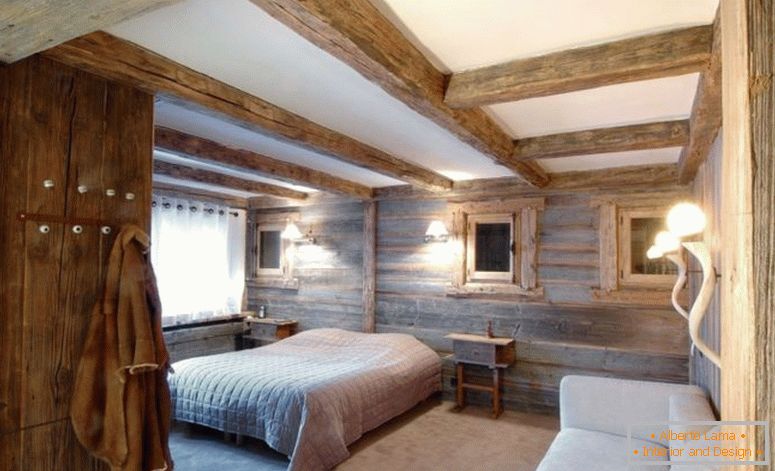 - Unele elemente ale setului de mobilier ar trebui să fie decorate în stilul "manual", deoarece este extrem de potrivit pentru clădirile din lemn;
