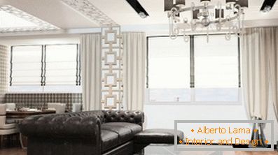 Nu doriți să utilizați partiții speciale? În acest caz, face spațiu confortabil și planificat convenabil vă va ajuta să alegeți mobilierul potrivit, lămpile și alte accesorii! De exemplu, un piept larg de sertare sau un raft mic pot acționa ca niște divizoare discrete, în timp ce o lampă de podea mare, picturi pe pereți sau în sculpturi înalte vor face interiorul mai confortabil și mai primitoare.