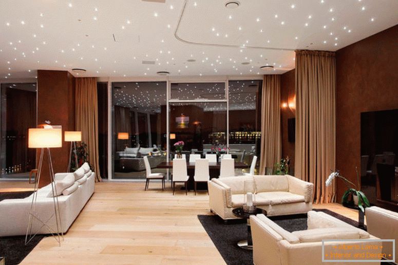 Armonizați nuanțele complexe care le dezvăluie fețele în funcție de lumina care intră. Interiorul poate fi încălzit de o canapea în design scandinav. În plus, pot exista incluziuni sub forma unei culori turcoaz luminoase de culoarea chihlimbarului. Culoarea albă creează direcția principală.